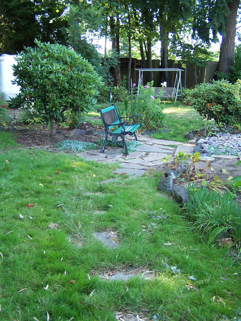 There is a japanese garden in the center of the yard with a stone pond. It has a miniature japanese maple, bonsai evergreens, azalea, ornamental grasses, bleeding hearts and foxglove. That’s my studio sunroom up above! (Update 2014- we have now redesigned the Japanese garden bed with a large koi pond and many new Japanese plants, stay tuned for more pictures)