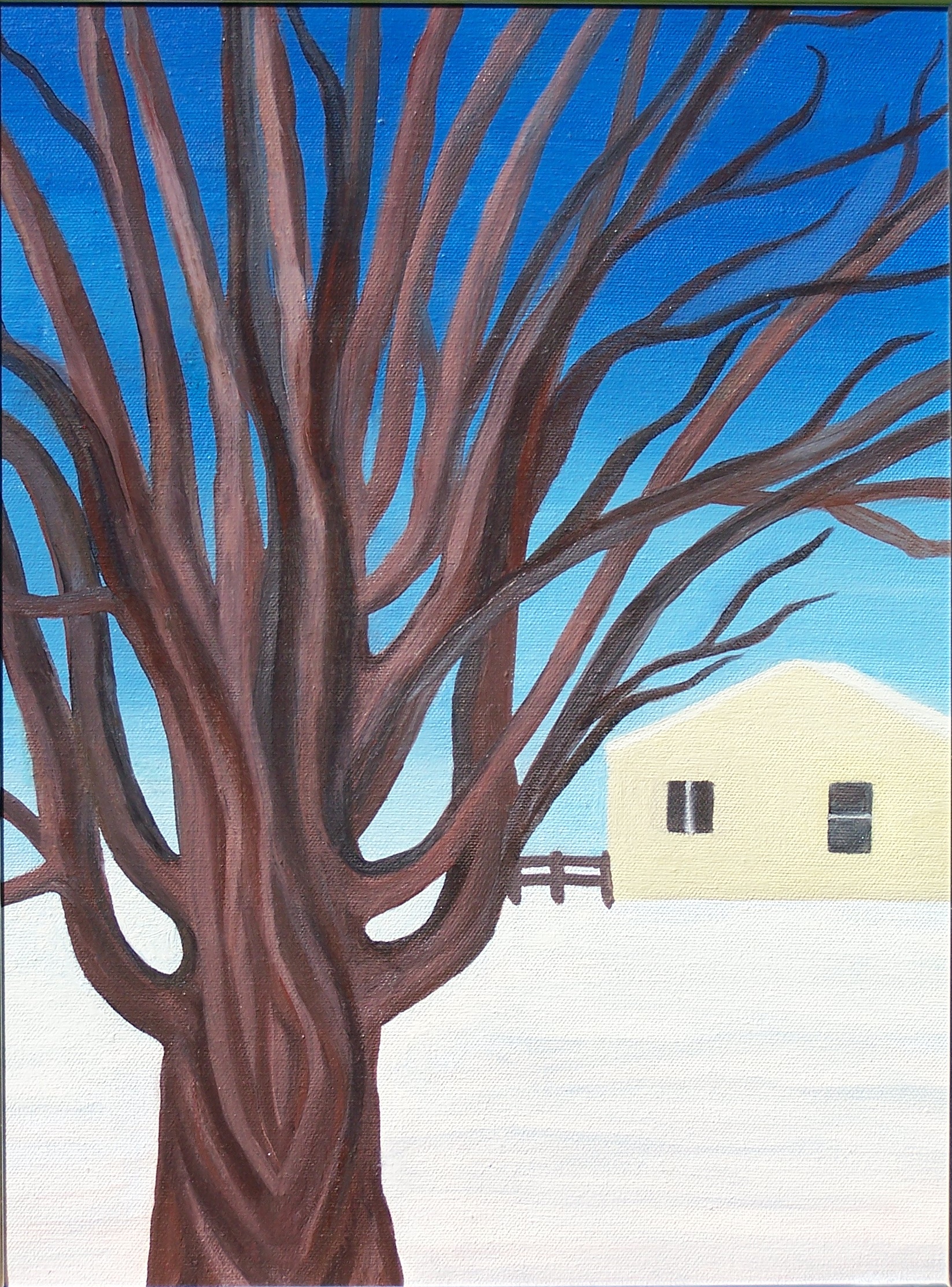 This winter country scene highlights a majestic old tree. Ancient trees have lived for many generations- what stories they must hold. Trees show us simple truths about life and nature. This piece includes a silver metal frame, and it is ready to hang.
