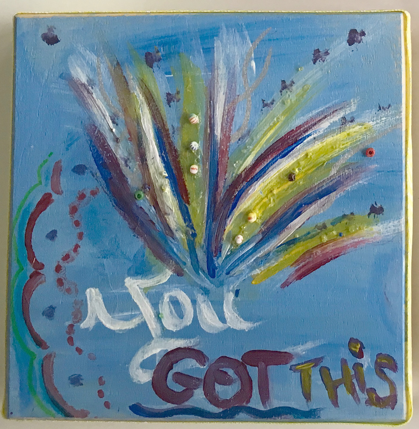 This hand painted Inspiration Mini measures just 4″ x 4″. Perfect size to prop on a desk or shelf. Each piece is signed and dated © Robin Phillips Occhipinti.